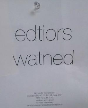 I think I might’ve said “edtiors ndeeded,” instead. 🙂