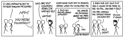 Q. Consider the word literally in a sentence like this: “His jokes literally kill me.” To avoid a rather grim interpretation, shouldn’t it be “his jokes figuratively kill me”?