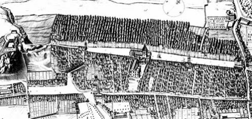 Royal Mile in Medieval Edinburgh (rows of buildings and closes between them)