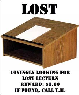 This one is for my buddy, Todd, who lost his lectern the other day.