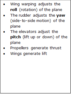 And lastly, we learned about the different motions of the airplane (roll, pitch, and yaw) and which parts of the plane control those motions. I’ve added a text box next to the lovely graphic from PBS, above.