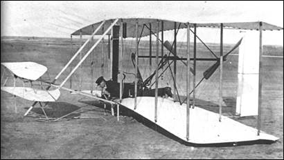 First, here’s Wilbur strapped into the 1903 Wright Flyer I. No, he’s not lying on the plane backwards. Initially, the lift of planes was controlled in the front.