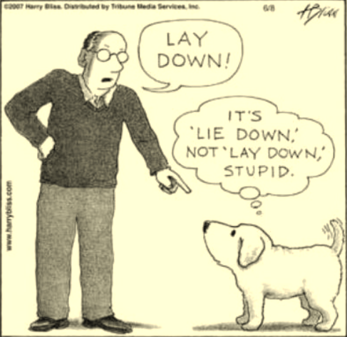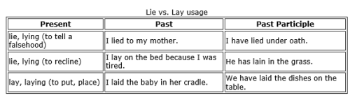 Lay and lie are frequently confused words. In present tense, lay means to put or set something down (and it requires a direct object). For example: