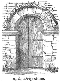 15. dripstone: a stone that projects over a door or window as an awning, or a stalactite or stalagmite made of calcium carbonate
