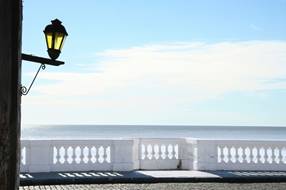 1. balustrade: a kind of low wall that is placed at the sides of staircases, bridges, etc., and that is made of a row of short posts topped by a long rail
