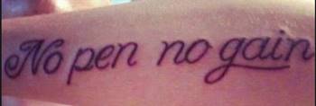 I don’t know, “No pen, no gain.” seems like a great Tech Writer tattoo…