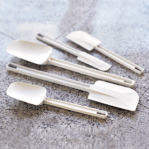 This is what most people think of when you mention the word spatula. The primary purpose is to get all the batter or soft dough from a mixing bowl, but other uses include folding and blending ingredients, where a more gentle approach is required.