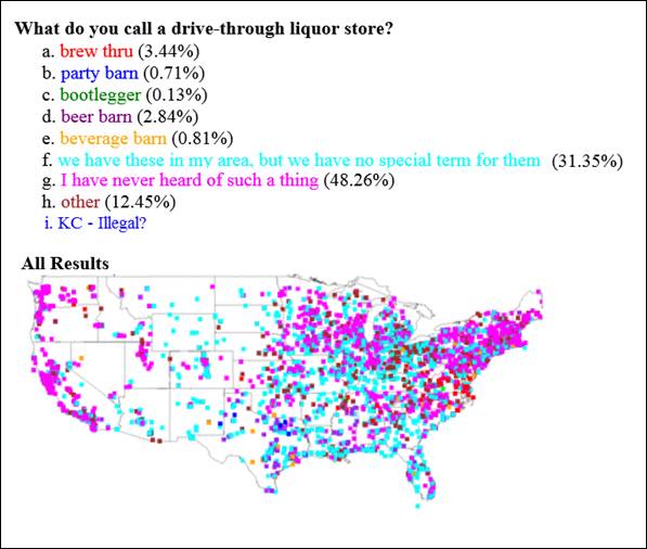 Here are two dialect maps that I found interesting and funny, but there are several more here (Dialect Survey Results) if you are interested.