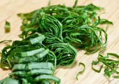 7. chiffonade (“crumple”): finely cut or shredded herbs or vegetables