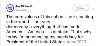 The other day, Joe Biden announced that he’s running for president in 2020. No comment from me about the politics, but I’m here to tell you about the uproar he caused in the world of grammar and punctuation. Here is his tweet:
