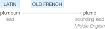 And the etymology of plumb, which, as you can see, is related to the periodic element for lead (Pb). This might remind you of the word for the person that works with pipes (lead or otherwise), the plumber.