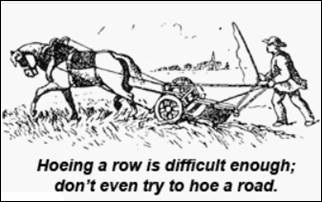 I often hear the phase “road to hoe” and always thought that was strange. I saw it in print for the first time and thought it even stranger. With many famers in my family, “row to hoe” makes much more sense as a person would hoe weeds along a row of crops. It is back-breaking work, which makes it hard and seemingly endless if a full field is expected to be weeded.