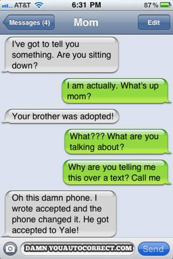 And just a warning you probably don’t need about reviewing your text messages before you send them. The autocorrect feature can cause a world of embarrassment. While looking for an example I came across a slew of hilarious texts gone wrong. Here’s one that won’t get me fired: