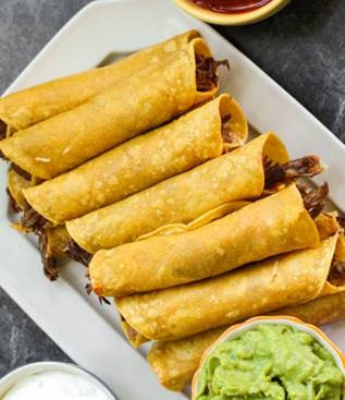 What I sent you was a photo of rolled tacos, also called taquitos; these are smaller than flautas, and made with corn tortillas. Taquitos are also more common, eaten by the peeps on the street. Flautas are made with white flour tortillas and are more upscale and served for meals. (Thank you, Javier and Susan, you made me even hungrier!) As mi amigo said, “Rolled tacos are served in the House of Commons; flautas are served in the House of Lords.” I know, we’re not in England, but you get the gist.