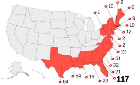 Florida is the big winner, with Texas and Louisiana trailing behind in a contest I wouldn’t want to be a part of.