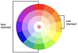 “peacock colorway” for obvious reasons.] - Contrast: the degree of difference in colors or light and dark, or their juxtaposition