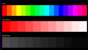 - Hue: color, gradation of color, or the characteristic that distinguishes one color from another