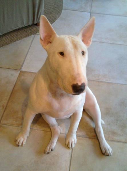 Example: I was awakened by my very impatient, very persistent, slightly spoiled English bull terrier who wanted to go out in the dark and sniff around for squirrels.