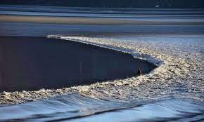 The bore tide is a rush of seawater that returns to a shallow and narrowing inlet from a broad bay. Bore tides come in after extreme minus low tides created by the full or new moon.