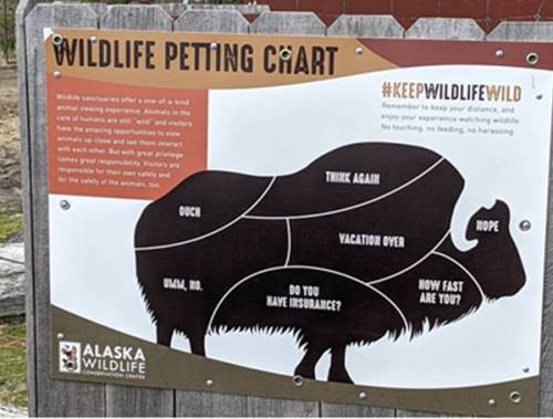We did not see the strikingly fast and large tide, but we did see a slower, shallower version moving in as a backdrop to the wedding we went to at the Alaska Wildlife Conservation Center. And on that note, I have a couple of things I found entertaining at the center.