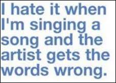 I thought I’d see if there was anything new on the internet about mondegreens, since those are always a popular topic. While mondegreens are generally defined as misheard song lyrics, I found a book that covers “mishearings” from many sources, including children’s rhymes, advertisements, phrases, church songs, and a whole passel of different things. Here is the first batch of items I have for you from Mondegreens: A Book of Mishearings, by Jacquie Wines. First are the original words or lyrics, followed by the misheard version or versions.
