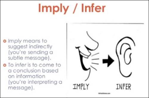 And finally, let’s look at the words imply and infer. These words get mixed up a lot because they both deal with indirect suggestions: