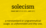 | solecism | From the Greek sloikos for speaking incorrectly, solecism refers to the ancient Greek city of Soloi, an Athenian colony infamous for its corrupted form of the Greek language.