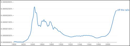 To get to the roots of the phrase “off the rails,” you have to go back to the 1800s and the world of rail transportation, aka trains. When a train goes off the rails or is “derailed,” it veers off its intended track, leading to accidents, delays or general chaos.