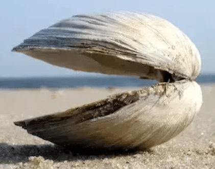 Wait a second! It’s a smiling clam. Okay, that makes slightly more sense. You don’t usually look at them at this angle: side view, flat on the beach.