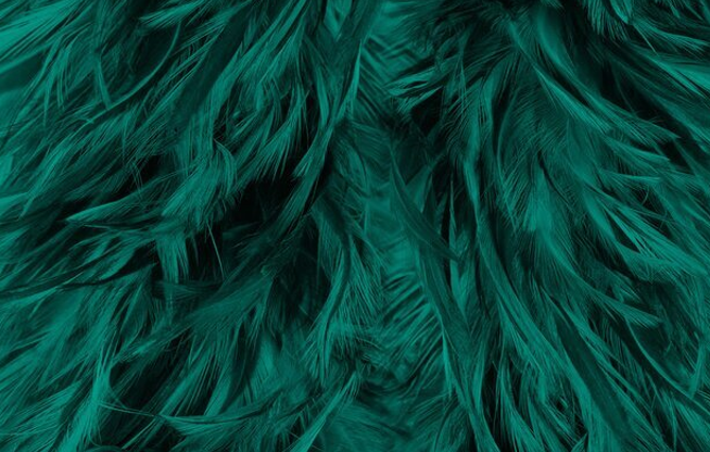 I was hoping to find a classic car in viridian green, but the closest I could come to viridian was this lovely bouquet of bird feathers: