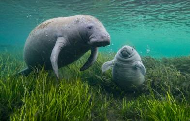 Manatee doesn’t even get the label “color” according to the dictionary. The color is named for the creature! I’ve never seen one in the wild, but I haven’t been to the right places. Here is a picture of a mamma manatee and her chubby little trooper, sporting beautiful manatee-gray skin.