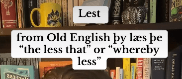 Moving on, our next word is lest. I don’t know if I’ve ever used the word “lest,” except for maybe while performing in a Shakespearean play. But who knows, maybe you use it all the time. For this one, I’m going to share a screen from the video, because I don’t know how to say or type these letters: